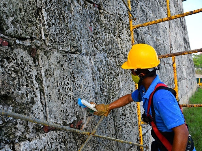 Le quitan la costra a las murallas en Cartagena para recibir al turismo en el fin de año