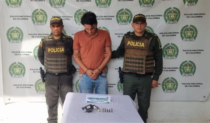 Los uniformados patrullaban por el barrio Simón Bolívar de Magangué, centro de la ciudad, cuando le solicitaron un registro personal a un hombre identificado como Carlos Andrés Calderón Londoño, de 34 años, a quien le habrían encontrado el arma de fuego cargada con 5 cartuchos.