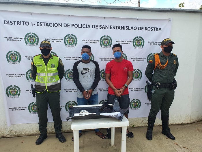 Gracias a esto, ciudadanos informaron sobre la actitud sospechosa de dos ciudadanos que estaban a la entrada del municipio de San Estanislao de Kostka, en la vía que conduce a Villanueva. Una vez los policías del cuadrante atienden el llamado de la comunidad llegan al lugar donde estaban los dos sujetos para practicarles un procedimiento de rutina.