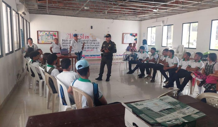 En tal sentido, el gestor comunitario de la estación de Policía El Carmen de Bolívar, patrullero Luis Martínez Suarez, en coordinación con la secretaria de Gestión Social, la Comisaria de Familia, pusieron en marcha la campaña “El Carmen de Bolívar sin Drogas”, que tiene como objetivo educar y sensibilizar a los menores para rechazar de sus vidas todo tipo de sustancias o elementos adictivos.