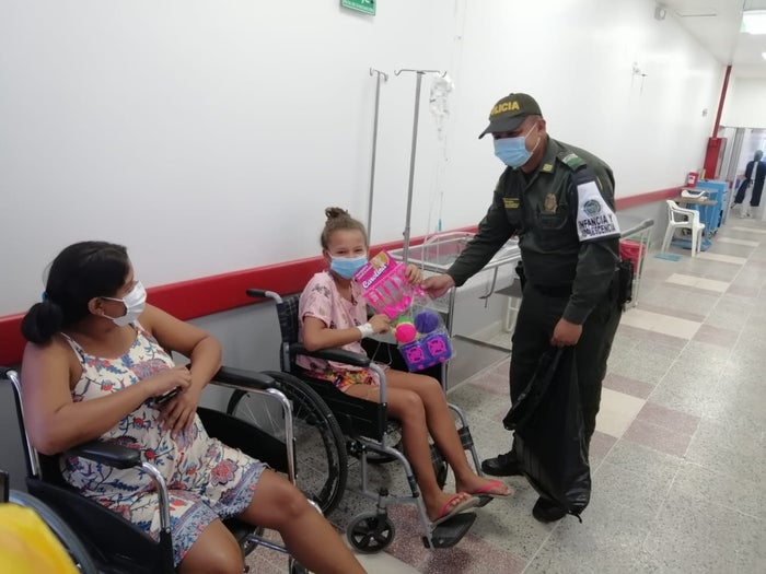Al Hospital la Divina Misericordia del municipio de Magangué, y al populoso barrio barrio José Antonio Galán, llegaron uniformados de la Policía Bolívar cargados con juguetes para los niños y niñas que se encuentran hospitalizados.