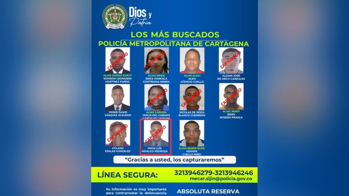 “Se destaca y reitera el llamado a la comunidad por información para capturar y poner a disposición de las autoridades a estos presuntos delincuentes que perturban la tranquilidad de los cartageneros y visitantes”, indicó la institución.
