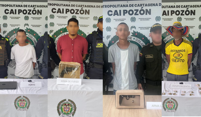 En las últimas 24 horas, la Policía Nacional en Cartagena ha capturado a 15 personas por distintos delitos, entre ellos seis por hurto, tres por tráfico de estupefacientes, uno por porte ilegal de armas de fuego y uno por utilización ilegal de uniformes e insignias.