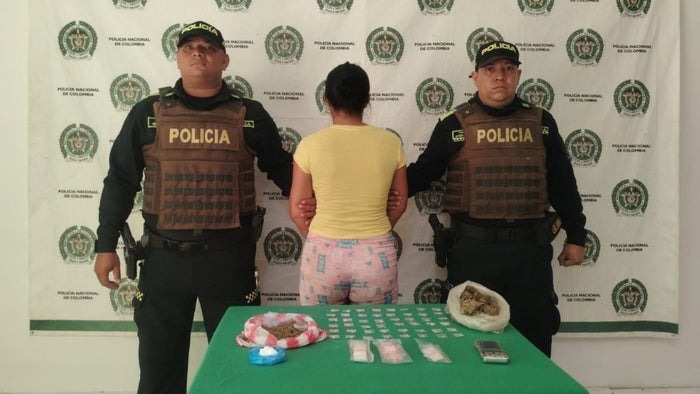 Durante un patrullaje preventivo en el barrio Las Margaritas del municipio de Arjona en el departamento de Bolívar, uniformados de la Policía Nacional capturaron a una mujer de 23 años identificada como Alanis, quien portaba 123 dosis de marihuana y 35 dosis de base de coca listas para comercialización.