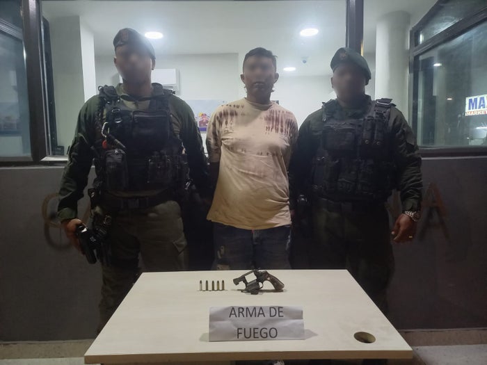 En una rápida reacción por parte de nuestras patrullas de vigilancia, en el sector Villa Zuldany, del barrio EL Pozón, fue capturado “el Julio”, quien se desplazaba a pie de forma sospechosa por el sector, siendo interceptado, encontrándole en su poder un arma de fuego industrial tipo revólver marca Llama Scorpio calibre 38mm, con cuatro cartuchos de igual calibre sin percutir.