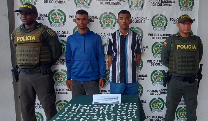 De acuerdo con las autoridades, estos sujetos fueron capturados en el barrio Primero de Mayo, cuando le hallaron 231 dosis de base de coca, lista para ser distribuidas.