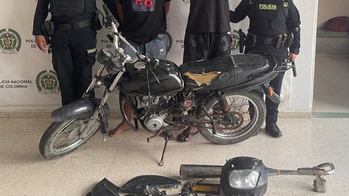 La captura se realizó en la avenida El Consulado, tras un aviso por parte de la de la ciudadanía y por lo que las patrullas de vigilancia se dirigieron hacia el sitio. Los detenidos, identificados como ‘el Wilfri’ y ‘el Divin’, de 31 y 19 años respectivamente, fueron sorprendidos desmantelando la motocicleta que habrían hurtado minutos antes en el barrio Zaragocilla.