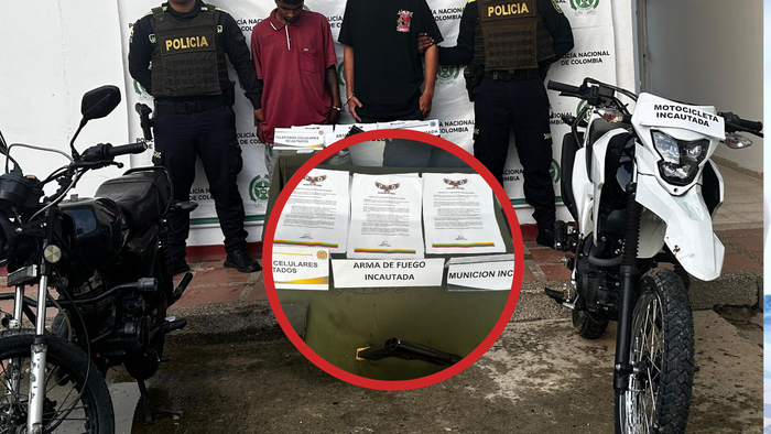En el operativo fueron incautados un revólver, cinco cartuchos calibre 38, y dos motocicletas: una con reporte de hurto desde febrero en la vía entre Carreto y Calamar, y otra con los sistemas de identificación presuntamente adulterados.