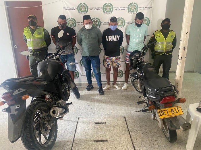 Las personas capturadas en este operativo fueron identificadas como Jorge Junior Miranda Jiménez de 26 años, Álvaro Andrés Castro Socarras, de 26, Hugo José Perea Cadena 22, y John Eduardo Gutiérrez Acosta de 37 años, quienes junto a las motocicletas, fueron dejados a disposición de la autoridad competente para que respondan por los hechos cometidos.