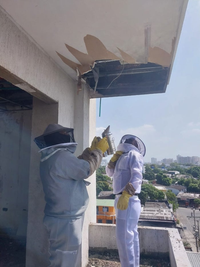 El Establecimiento Público Ambiental, con apoyo de la Guardia Ambiental, logró frenar la amenaza que representaba la existencia de un enjambre de abejas que invadió un edificio abandonado en el sector de Los Caracoles.