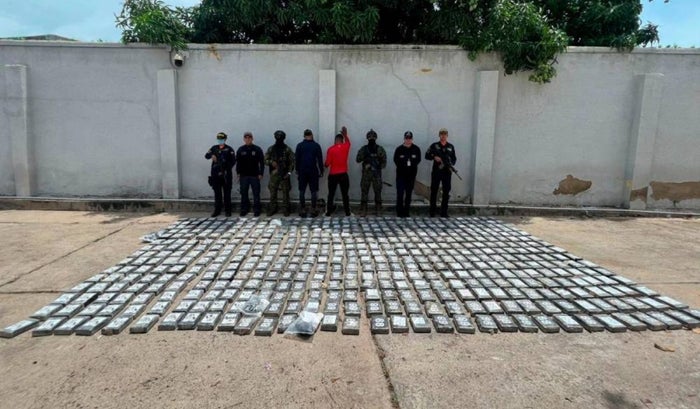 “Los sujetos que tripulaban la motonave, al notar la presencia de las autoridades, arrojaron el cargamento al mar y emprendieron la huida, por lo que de inmediato los uniformados procedieron a recuperar el alijo, sacando del agua 13 costales con 390 paquetes rectangulares que contenían el alcaloide”, dijo la Armada.