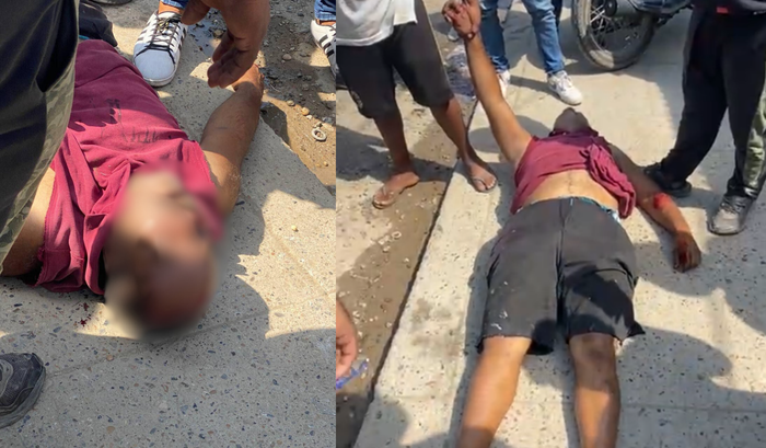 La víctima quién vestía un suéter rojo sin mangas y una mocha negra, se veía tirado en el piso con impactos de bala en la cabeza; que repentinamente acabaron con su vida.
