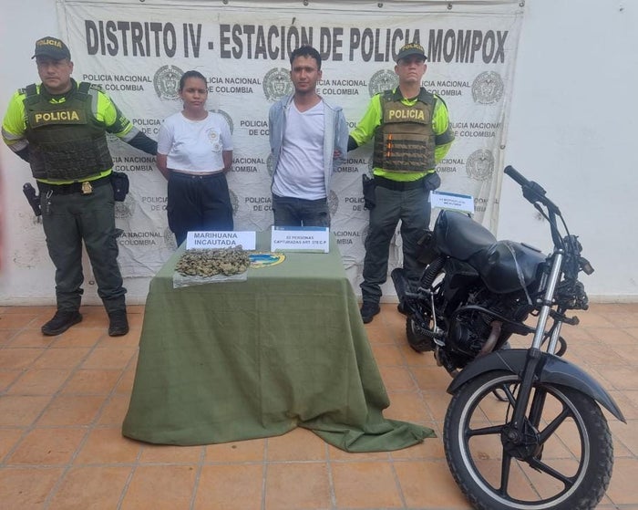 El operativo desplegado en un puesto de control en el casco urbano de Mompox, fue clave para que estas personas se les diera la orden de pare y descender del vehículo; al realizarles un registro personal, se les halló un paquete envuelto en una bolsa plástica que en su interior contenía una sustancia verdosa que por su olor y color se asemejaba a la marihuana.