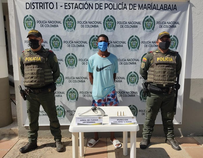 La primera captura se dio cuando uniformados del Modelo Nacional de Vigilancia Comunitaria por Cuadrante que pertenecen a la Estación de Policía de María la Baja realizaban labores de patrullaje en el barrio Monte Carlos, sorprendieron a un hombre que portaba un arma de fuego.
