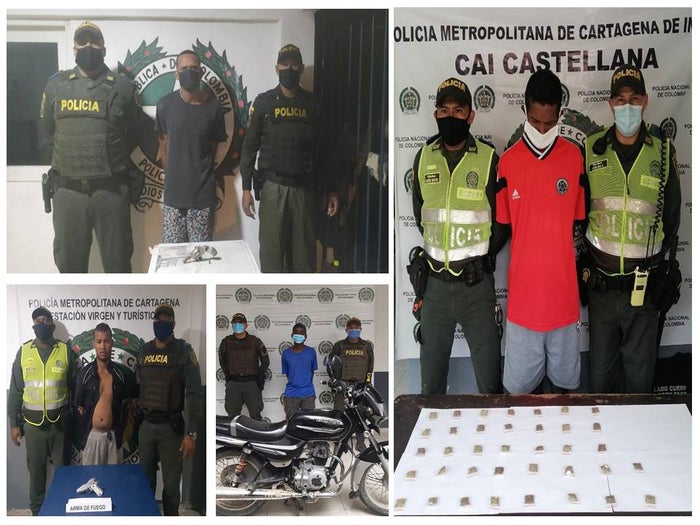 36 presuntos delincuentes fueron capturados por La Policía Metropolitana de Cartagena en diferentes procedimientos, donde se incautaron siete armas de fuego, munición de diferentes calibres, 45 armas blancas y 295 dosis de estupefacientes entre marihuana, base de coca y pastillas sintéticas.