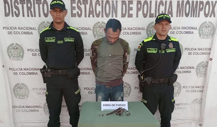 Ha informado la Policía de Bolívar que los constantes operativos y patrullajes que realiza el Modelo Nacional de Vigilancia Comunitaria por Cuadrantes de la estación de Policía de Mompox, permitió capturar en flagrancia a un sujeto quien portaba un arma de fuego con el que despojaba a sus víctimas de sus objetos personales.