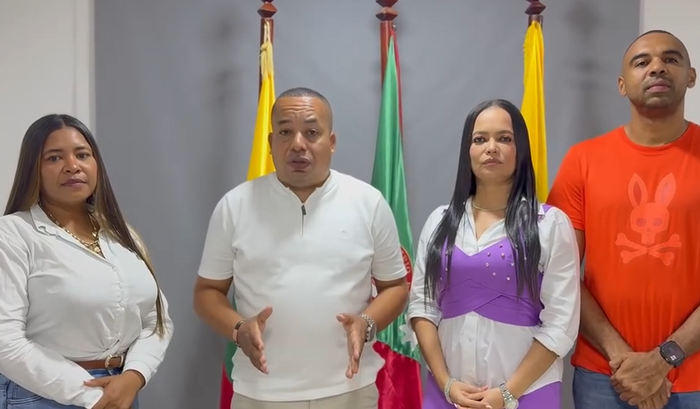 "También queremos aprovechar este espacio para informarle que están enviando unos vídeos personas inescrupulosas, manifestando que están en el municipio, que son parte de grupos al margen de la ley, llámese Clan del Golfo, llámese autodefensas capitalistas y cualquier otro grupo criminal para extorsionar y pedir dinero y decir que están aquí en este municipio haciendo presencia con ese vídeo, te interceptan por una videollamada, se hacen llamar comandante Ramiro".