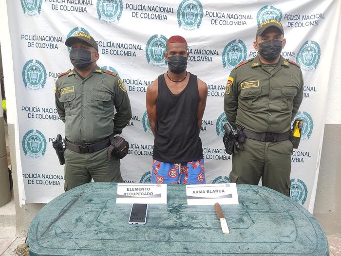 En su poder los policías le hallaron el cuchillo y un celular marca Xiaomi Redmi Note 9S color azul, avaluado en $1.300.000, que le hurtó a una joven de 18 años que se encontraba en la terraza de su casa cuando fue atracada.