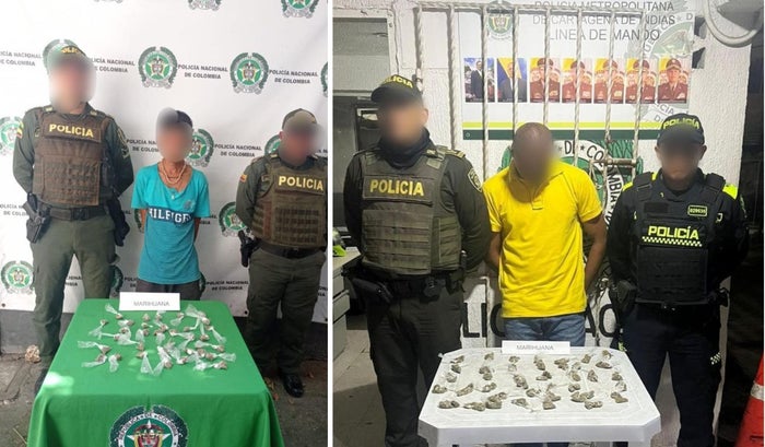 Así mismo, en los municipios de Turbaco y Clemencia, las patrullas del cuadrante en planes de registro y control, lograron interceptar a dos hombres identificados como Ender, de 40 años, y Francisco de 32, a quienes les fueron encontradas 40 dosis de cocaína y cinco bolsas plásticas para empacar marihuana.
