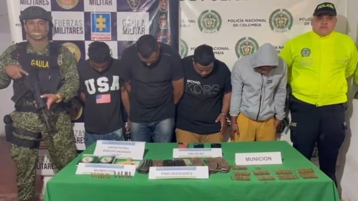 “Los detenidos, que al parecer formaban parte de una banda dedicada a homicidios selectivos en la región, fueron aprendidos luego de un enfrentamiento con las autoridades en una finca de la zona rural, donde intentaron huir tras disparar contra el personal uniformado. En la operación se incautaron municiones de diversos calibres, proveedores para fusiles y equipos de comunicación, y propaganda del grupo criminal”, indicó el mayor Bonardo.