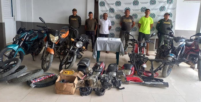 Estos cuatros sujetos junto con la moto hurtada, fueron dejados a disposición de la autoridad competente por el delito de receptación a esperas de las audiencias preliminares para que un juez de la República les defina su situación judicial.