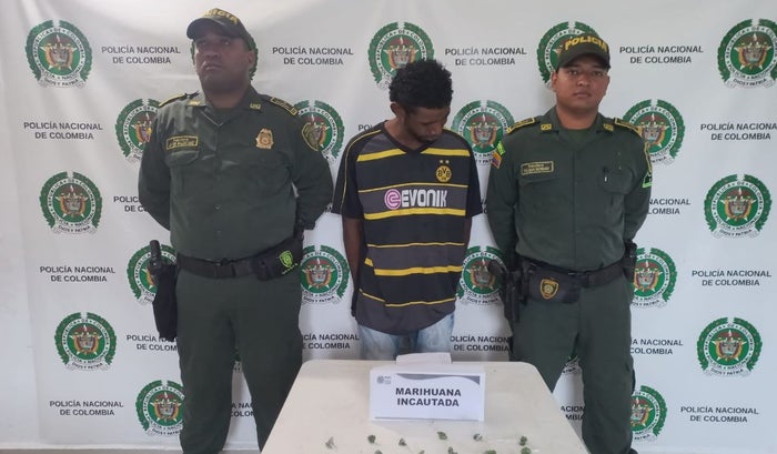 La detención se llevó a cabo en el barrio Sur del municipio de Cicuco, momentos en que la patrulla se encontraba realizando rondas, observando a una persona con una actitud sospechosa. Al practicarle un registro personal y solicitud de antecedentes, los uniformados le hallaron en sus bolsillos 20 dosis de marihuana listas para ser comercializadas.