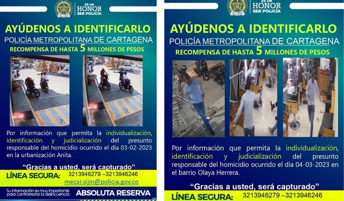 La Policía Metropolitana de Cartagena reiteró que es importante contar con la colaboración de los ciudadanos para dar con la ubicación de estos delincuentes, para prevenir y evitar que sigan cometiendo homicidios y hurtos, generando afectación a la vida y bienes de las personas.