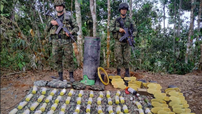 Se conoció que, cuando los uniformados realizaron una inspección en el lugar, hallaron 71 minas antipersonal con sistema de activación por presión. También se encontraron cerca de 50 elementos de intendencia, 5 granadas de mano de fabricación artesanal, una granada de 60 mm, una rampa de lanzamiento, igualmente las autoridades notaron un brazalete alusivo a la organización que identificaría al Clan del Golfo.