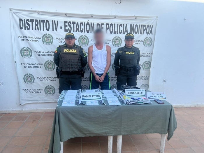 En operativos realizados por unidades del Modelo Nacional de Vigilancia Comunitaria por Cuadrantes, en el corregimiento de Guataca del Distrito de Mompox, capturaron a un hombre de 30 años, oriundo del municipio del Banco-Magdalena, que, fue sorprendido en flagrancia repartiendo y pegando panfletos alusivos a un grupo al margen de la ley.