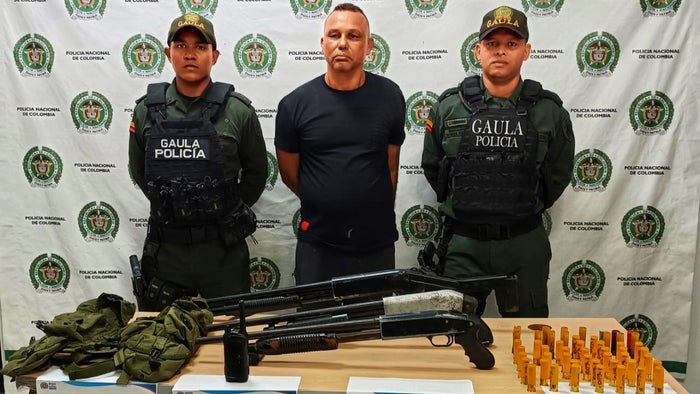 Por otro lado, sobre la captura de alias Goyo, se conoció que ocurrió durante una diligencia de registro y allanamiento realizada en su vivienda, ubicada en el barrio Villas de Aranjuez de Cartagena. En su poder fueron halladas tres escopetas, 54 cartuchos de diferentes calibres, un radio portátil y un chaleco multipropósito de uso militar.