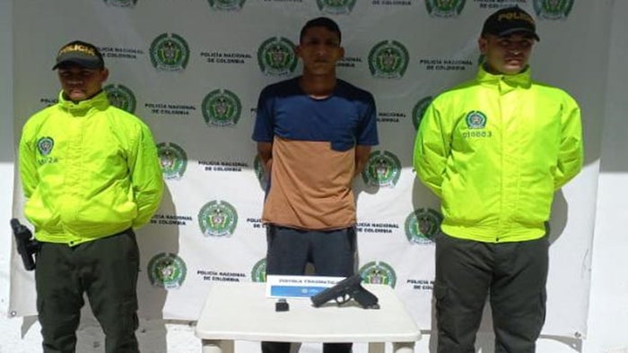 El capturado fue identificado como Luis Eduardo Trillos Rodríguez, de 22 años de edad, quien una vez desarmado fue trasladado hacia las instalaciones policiales para adelantar la respectiva documentación y ser puesto a disposición de las autoridades competentes por el delito de intimidación o amenaza con arma de fuego; armas, elementos o dispositivos menos letales; armas de fuego hechizas; y arma blanca.