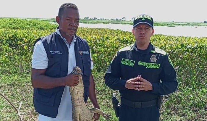 Fue así como en el municipio de Mahates en la vía que conduce al municipio de Soplaviento, se logró rescatar a una babilla de aproximadamente de 1.30 metros de largo y 25 kilogramos de peso, momento en el que se encontraba siendo atrapada por unos sujetos que presuntamente querían comercializarla, estas personas al momento de observar la presencia de los uniformados se dieron a la huida dejando al animal abandonado.