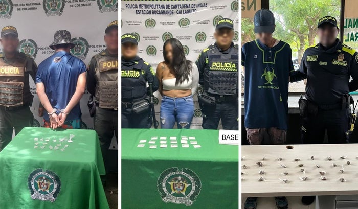 De igual forma, en el barrio Blas De Lezo, fue capturada una persona de 32 años de edad, conocida como “El Ángel”, quien transitaba de manera sospechosa por los entornos escolares, y al realizarle un registro se le encontraron 15 dosis de cocaína.