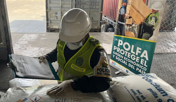 En las últimas horas, tras la inspección realizada por parte de los funcionarios de la POLFA y la DIAN a la salida de los muelles marítimos de la ciudad, se logra materializar la aprehensión de 3.9 toneladas de Cloruro de Calcio, el cual no cumplía con la regulación aduanera vigente para este tipo de mercancía que puede estar destinada a la industria alimenticia.