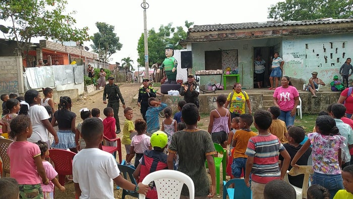 Según lo informado por el Departamento de Policía de Bolívar, el barrio escogido fue La Esperanza, un sector vulnerable de esta población bolivarense, que como su nombre bien lo dice, sus habitantes están llenos de eso, de esperanza. Ellos derrochan alegría, tranquilidad y, sobre todo, unión; por eso, no dudaron en disponer de sus arenosas calles para acomodar a más de 200 niños, quienes serían parte de un gran evento jamás visto en este lugar.