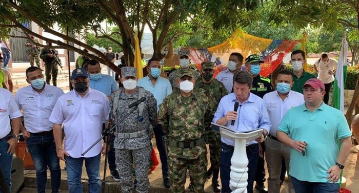 El ministro de defensa, Diego Molano, acompañado de la cúpula militar, alcaldes y funcionarios de la gobernación de Bolívar, anunciaron acciones contundentes en contra de grupos al margen de la ley que operan en la región como el ELN, Clan del Golfo y Disidencias de las Farc.