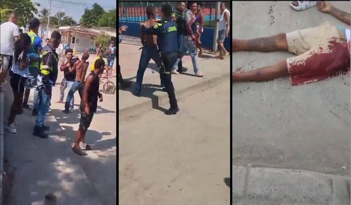 En varios vídeos grabados por curiosos se alcanza a observar cuando la víctima se desploma, se ve en la escena que un hombre tiene un machete en la mano, mientras un policía trata de mediar en la confrontación.