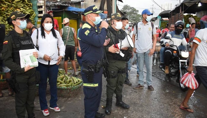 Una toma masiva al mercado de Bazurto fue el que realizó la Policía Metropolitana de Cartagena para mejorar y fortalecer el bienestar de la comunidad en este populoso sector de la ciudad. Con esta jornada de prevención realizada a través de perifoneo y entrega de volantes, se busca sensibilizar a comerciantes, clientes y comunidad en general para evitar que sean víctimas del delito de extorsión. Así como, realizar un llamado a la tolerancia para evitar las lesiones personales y el homicidio acudiendo oportunamente a las líneas 165 y 123 de la Policía Nacional.