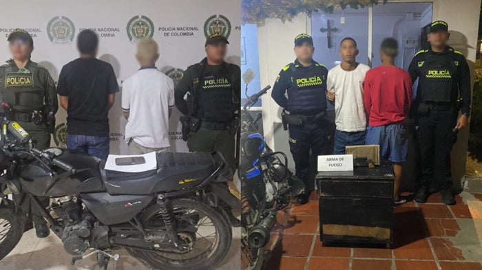 “Las patrullas de vigilancia capturaron a un sujeto y aprehendieron a un adolescente de 17 años, quienes minutos antes se movilizaban de forma sospechosa por el sector. Al ser abordados y practicarles un registro personal, se les encontró un arma de fuego hechiza, la cual fue incautada junto con la motocicleta”, indicó la Policía Metropolitana de Cartagena.