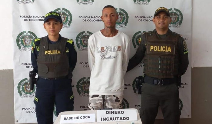 La Policía de Bolívar por medio del Modelo Nacional de Vigilancia Comunitaria por Cuadrantes logró capturar a una persona de 24 años de edad, quien se encontraba sentado frente a una Institución Educativa ubicada en el barrio La Paz en San Jacinto, al parecer, comercializando cocaína.