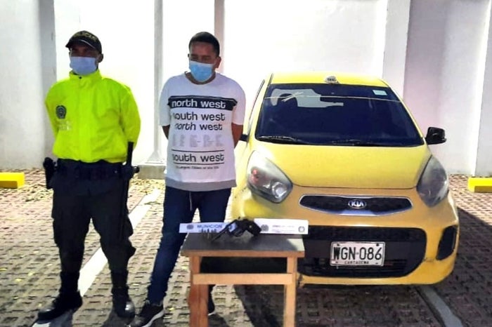 “Mediante actividades de inteligencia e información suministrada por fuente humana, la Sijín y uniformados de la Policía lograron la aprehensión en flagrancia del particular que al parecer tendría coordinado utilizar la fachada de conductor de vehículo público (taxi) para evadir los controles de la Policía”. Dice la Mecar.
