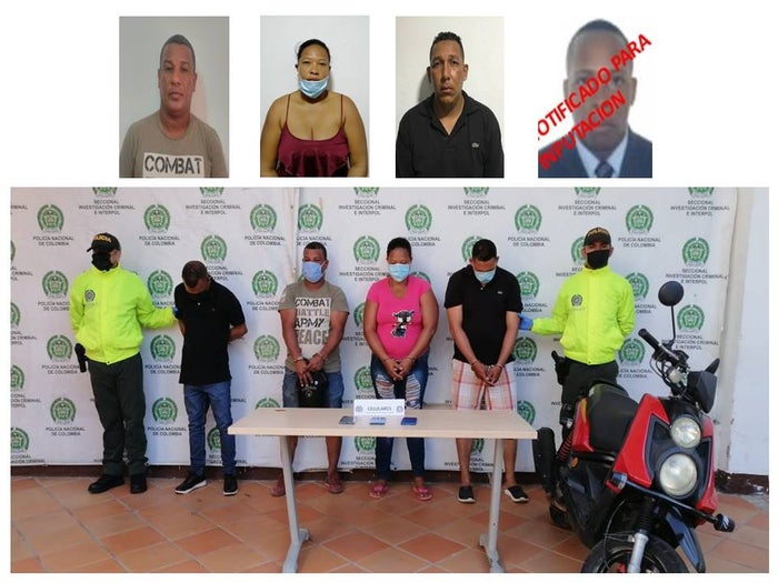 En la operación fueron capturados, alias 'Hilder', identificado como Hilder Marego Felizola Vanegas, cabecilla de la estructura delictiva; Giovannis Antonio Vergara Aldana, alias El Mono', encargado de intimidar a las víctimas; Luz Aida Baena Rodríguez, alias 'Aida', quien hacía la marcación de los establecimientos y víctimas; y Luis Alfonso Torres Sierra, alias 'Varón', notificado en centro carcelario, recluido en la cárcel de Ternera quien se desempeñaba como rodador o campanero.