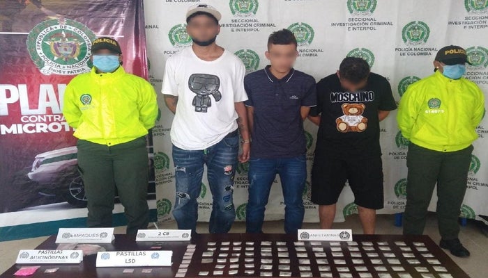 Los capturados, las dosis de alucinógenos, el celular incautado y el vehículo inmovilizado fueron dejados a disposición de la Fiscalía General de la Nación y se encuentran a la espera de las audiencias preliminares para legalización de capturas.