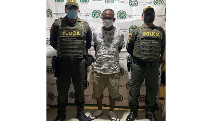 "Se trata de “Efraín” de 42 años de edad, el cual fue sorprendido por las patrullas de los cuadrantes cuando paseaba por el barrio Bocagrande, al ser requerido para verificar sus antecedentes judiciales a través de dispositivo electrónico PDA se torna nervioso, y en los resultados aparece un registro del INPEC donde este particular tiene vigente una medida de detención domiciliaria por los delitos de: Homicidio agravado, Hurto calificado, Concierto para delinquir y Fabricación, tráfico y porte de armas de fuego. Beneficio otorgado en la ciudad de Valledupar". Detalla la Policía.