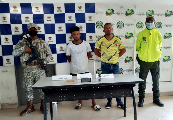 En el procedimiento, desplegado en el barrio La Victoria, fueron capturados padre e hijo, identificados como Uriel Antonio Chanci Higuita, de 43 años, conocido como “Uriel” natural de Luruaco (Atlántico), y Michael Chanci Ibáñez, de 24 años, conocido como “Angelito”, oriundo de Santa Rosa de Lima, puestos a disposición de la Fiscalía General de la Nación, por los delitos de fabricación, tráfico y porte de arma de fuego municiones y explosivos.