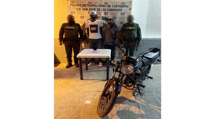 Policías de la Metropolitana de Cartagena capturaron a dos presuntos delincuentes, vinculados en múltiples hurtos cometidos en los sectores de La Bomba del Amparo, Santa Lucía, Bomba del Gallo y los barrios Providencia, El Recreo y San Pedro, especialmente al hurto de mujeres, a quienes intimidan para despojarlas de bolsos y celulares.