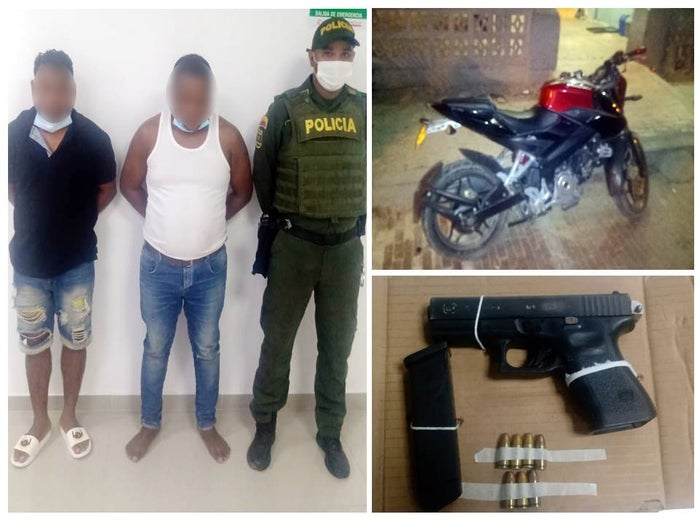 “Durante este resultado operativo se capturaron dos presuntos delincuentes, el parrillero que iba en una moto conocido como “Cocho”, con un amplio prontuario criminal, por los delitos de concierto para delinquir, porte tráfico y fabricación de arma de fuego y hurto calificado y agravado, así mismo el conductor de la motocicleta y se incautó una pistola”. Dice la Policía