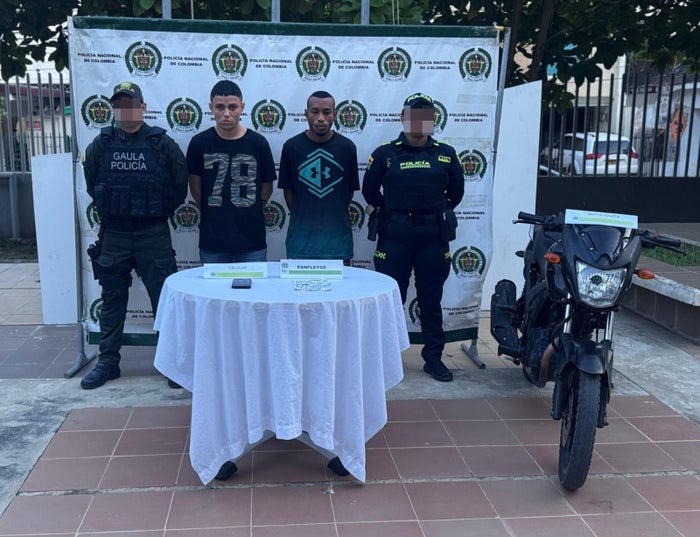 En el primer operativo, uniformados del Grupo de Acción Unificada por la Libertad Personal (GAULA) de la Policía Nacional, llegaron hasta el barrio La Campiña, donde adelantaron un operativo controlado antiextorsión, logrando la captura del ‘Pata de Palo’ y ‘Esteban’, de 21 y 20 años de edad, presuntos extorsionistas, quienes delinquían en este sector de la ciudad.