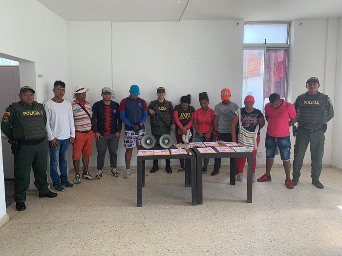 Mientras que El municipio de Rio Viejo, uniformados del Modelo Nacional de Vigilancia Comunitaria por Cuadrantes, logró incautar material probatorio que demostraría que las 9 personas capturadas, se dedican a la venta ilegal de rifas y chance en municipios del sur de Bolívar.