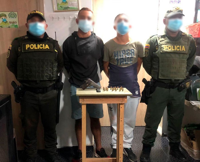 Dice la institución armada que gracias a los diferentes planes preventivos, disuasivos y operativos, fueron capturados estos dos presuntos delincuentes conocidos con los alias de “Pipe” y “Carlos Loco” de 26 y 23 años respectivamente, en poder de un arma de fuego y 15 cartuchos calibre 9 Milímetros.